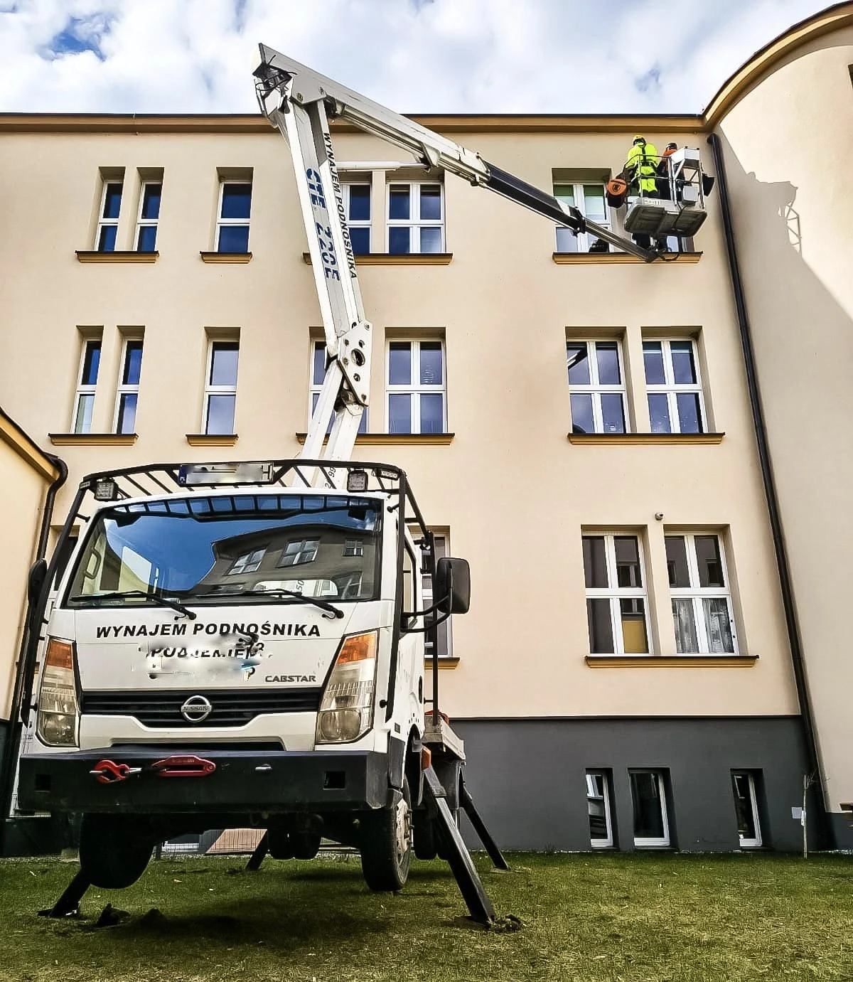 podnośnika koszowego – umożliwiającego szybki montaż zabezpieczeń na większych powierzchniach